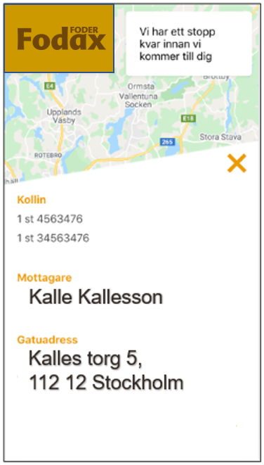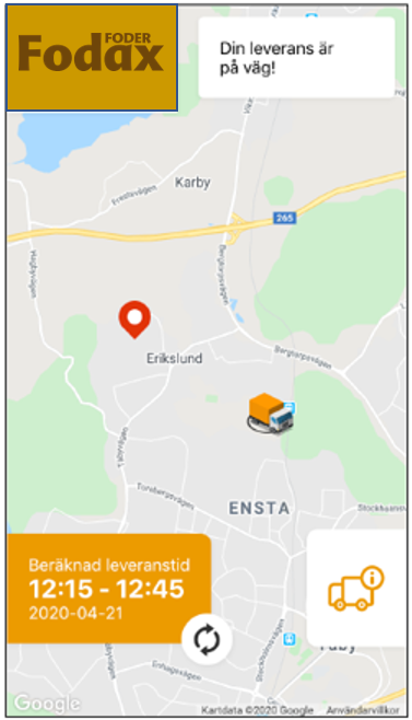 När din order är lastad för utkörning får du ett SMS med länk där du kan följa din leverans.